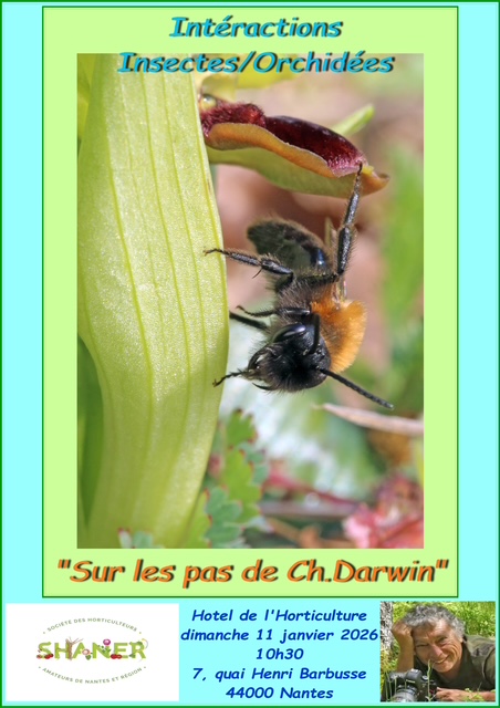 Conférence de J.Yves Tenière : Interactions insectes-orchidées, sur les pas de Charles Darwin. Charles Darwin, dans sa publication "De la fécondation des orchidées", mettait en évidence la coévolution entre les insectes >>>Lire la suite